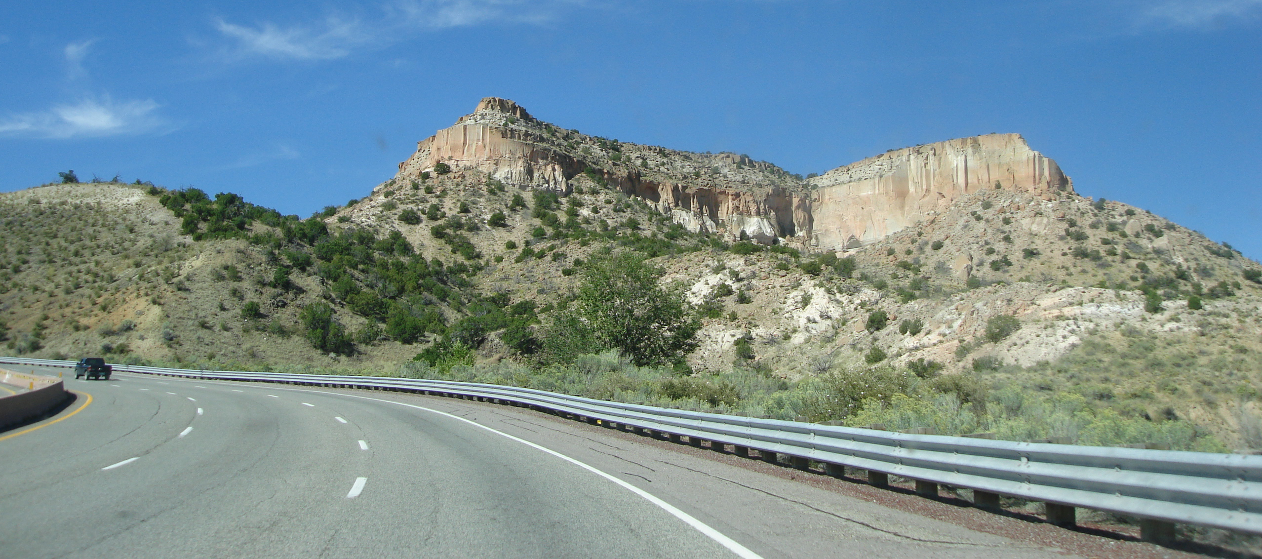A dash warning light told us we had a mystery soft tire (one light for all four tires is troubling). I have had, for years, a 12v tire pump that works off the lighter socket, so I set out to rectify the situation, only to discover that its hose had ripped, Zeus knows how. Also, there was no tire gauge in the glove box, as was specified, so we were in a bit of a pickle. Apparently, New Mexico gas stations are prohibited by law from having air hoses for their customers, for we came up empty repeatedly until we were directed to a weird truck stop that had a barely functioning air hose, but no regulator nor gauge. We filled each tire and restarted the car until the warning light went out, so we had no idea how much pressure was in the tires but none of them were low.