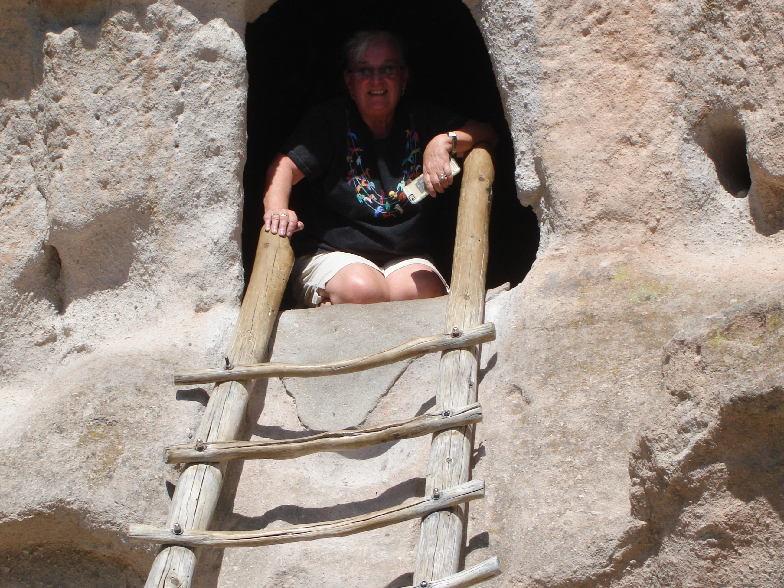wheeze my way up to the pueblos. A couple had wood ladders up to example dwellings. Vicki made the ascent and declared the