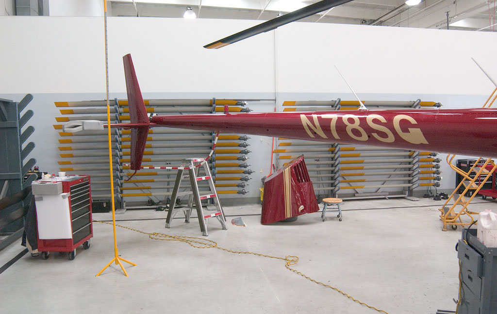 The final stop before test flight is in the rigging section. In this area, riggers attach main rotor blades and tail rotor blades. They statically balance them. Any other final adjustments are being done in this particular room which is a pretty large room, but tiny compared to the overal size of the factory.