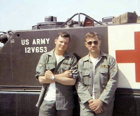 Dave Lubeski and Jim Charboneau in the motor pool.