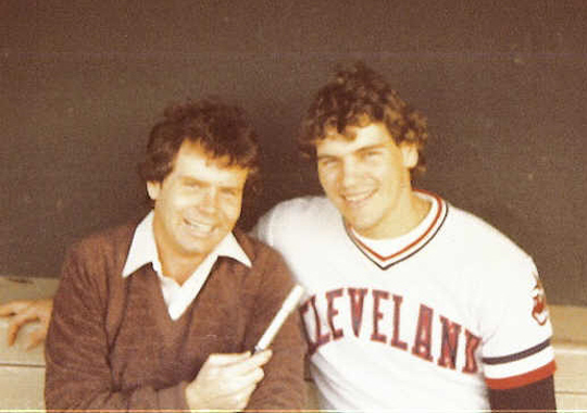 Lubeski (with microphone) and Joe Charboneau before one of the last games of the 1980 season between the Indians and Orioles in Baltimore. I did an interview that I used in one of my sportscasts.