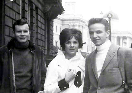 | |  | | 00261 Left to right: Dave Lubeski, Bernie Cashman, Terry Cashman in London, October 68. We were on leave just two months before going home. (NOTE: Cashman and I were draftees that met in Houston the day we were inducted. Our service numbers were one apart. We stayed together in Basic Ft. Polk, AIT Ft. Sam Houston and then were assigned together in the medic platoon of the 2/13. When we got out we were neighbors in Houston and continued our friendship. I moved from Houston in '74 to take a job at a radio network in Washington, D.C., but we've stayed in close touch over the years.) |