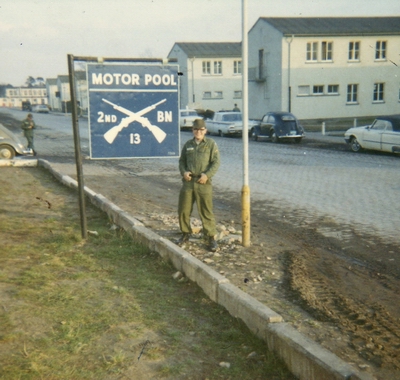 Clark in front of motor pool