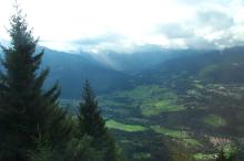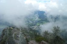 Mon 17-Sep-2001 Woke up early. Much to my dismay, my shower token did not work, which meant that I did not get any hot water. Checked out of the hostel and went to the train station, and got tickets to Berchtesgaden the town in the Bavarian Alps where many of the high ranking Nazis had homes. Erik got info on trains to the Mainz and it turned that there was a convienient overnight train. We had an hour to kill so we went to an internet cafe. Then we got on the train to Berchtesgaden, settled debts, and packed away my loose change now that Austria is behind us and we have no use for schillings. When we got to Berchtesgaden, we checked out the tourist's bureau. The good news was there was a tour of the Eagle's Nest, parts of the bunker, and the residences of some of the masters of the Third Reich in Obersalzburg. The bad news was that there was only space for two people; Chris and I would be the lucky ones. I did feel bad leaving the others behind. On the other hand, Erik didn't seem very interested to begin with either way, which seemed odd because he was interested in the Sound of Music tour. Anyways, we got to see the homes of many high ranking Nazis like Bormann, Göring and Speer (Hitler's home, the Berghof, was demolished). The Eagles Nest would turn out to be very interesting; it was a tea house built as a birthday present for Hitler, built above the clouds. The interesting thing is due to Hitler's fear of heights, he would never use it to any degree. The tour was everything that the previous tour was not: interesting, informative, not a tourist trap, and free of the Bob Saget crap humor. We had a good dinner at Luitpoldpark; I cannot say that I am tired of Schnitzel yet. We then boarded the train back to Salzburg so we could catch the night train to Mainz. Back at the Salzburg Hauptbahnof, we had two hours to kill. People had fun spending their very last of their schillings and other stuff. The train would turn out to be 20 minutes late, so we ended up lounging around the train station before departure. Also, a drunken bum came up and begged us for beer in very slurred German. It was quite an amusing experience; as he couldn't realize for more than a few seconds that I did not speak German. Upon realizing that I was an English speaker, he would start a sentence in English and end it in German (I think it was German; maybe it was just English slurred beyond all recognizition). Finally a little bit after midnight, we boarded the train for Mainz.