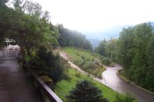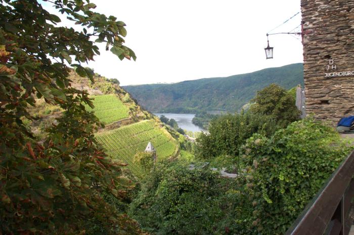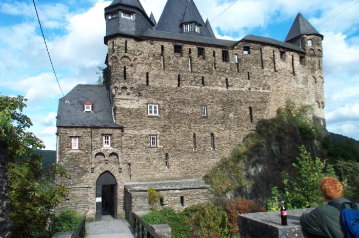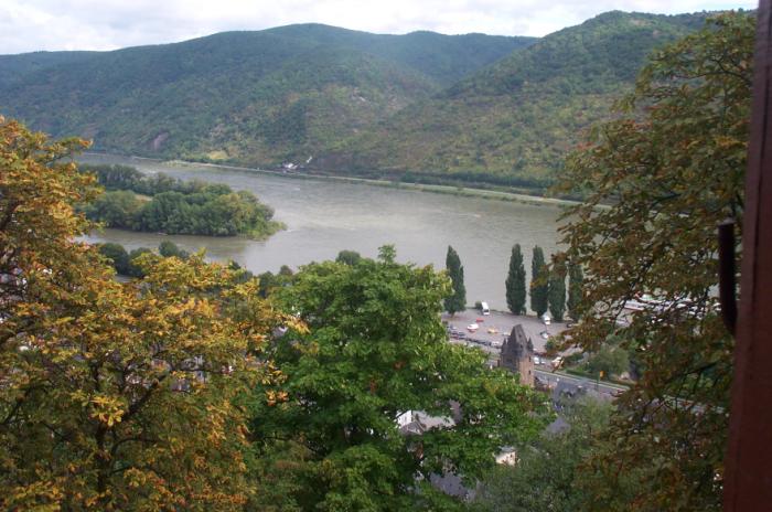 Tue 18-Sep-2001 Woke up in Mainz. This was my first time on a sleeper car. I "sort of" slept, but it was much better than a redeye flight. We got on a train to Bingen, or what we thought was the train to Bingen; we ended up in Wiesbaden, which was in the wrong direction. We got off there and went to an information booth, and found out where we actually had to go, and Chris got tickets. Corey had to run to the rest room so Chris and I had to go ahead to Bingen. We arrived there and dawdled for an hour and then Erik and Corey arrived. We went out of the train station and walked alongside the Rhine and to the docks, and went on a river cruise up the Rhine to a town called Bacharach. Our hostel there was in a castle called Castle Stahleck. To reach it, we had to climb five hundred stairs up a mountain carrying our packs. Never again. The location did have some strong points, namely the view. This castle is on the top of a high hill overlooking the Rhine valley, as well as a very quaint but pretty town. Over the course of my stay, I took many pictures. After settling in, Erik took a nap and Corey and I went down to the town to investigate accomodations in and travel to Munich. After visiting the train station, it became clear that the way to go would be through Mainz again and on to Munich, and we would be leaving on Thursday so we would just catch the first train we could. Then came the hard part - accomodations. Since Oktoberfest would be in progress, we knew that accomodations would be hard to come by. We went to a pay phone and Corey got together all of our travel books with hotel/hostel listings and started calling. There were no vacancies in Munich nor Augsburg. We did find some vacancies in two hotels in a city called Garmisch-Partenkirchen, which is a small city in the Bavarian alps that hosted the ski part of the 1936 olympics. The place is actually closer to Innsbruck than Munich, but still less than an hour by train. The two hotels were called the Gästehaus Trenkler and the Hotel Schell. To be safe (as well to be jerks), we double booked ourselves. When we got back to the castle/hostel, Chris informed us of an interesting discovery about the place at which we were staying; full service laundry! I then got a good amount of my dirty clothes together so my pack wouldn't have the properties of a chemical weapon when I go home. I also learned another thing about this place; tons of screaming kids. After dinner in the cafeteria, we took it easy and bummed around.