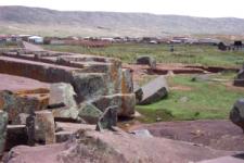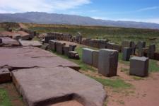 4-Jan-2003 - Got up at 6 AM, packed up, and headed out. Leaving our bags at the hotel, we set out on a day trip to the ruins of Tiahuanaco. Tiahuanaco (or Tiahuanacu or Tiwanaku) was the center of a pre-Columbian culture that held sway over much of the region from circa 600 BC to 1200 AD. Not much else is known about them.