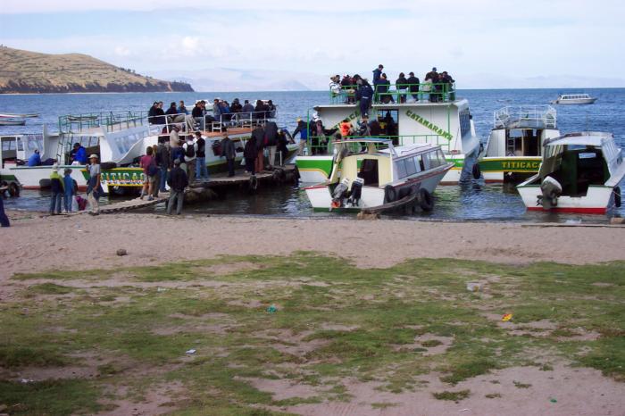 5-Jan-2003 - Woke up to the sound of roosters, got up, suited up, left our non-essentials in the rec room and set out. I changed a traveller's check and we got on a boat for a tour of Isla del Sol.