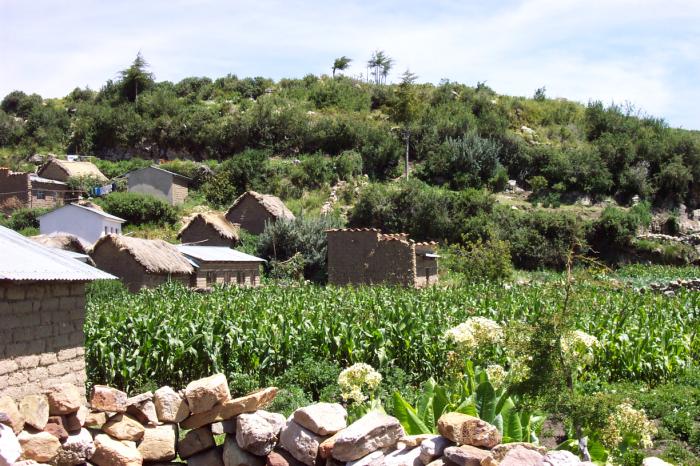 The boat set off and moved around counter clockwise around the island and deposited us on the north end of the island, at the village of Cha'llapampa. The plan was that the boat would be at the southern end of the island and we would hike the five kilometer hike down the island, with a guide accompaning us for part of the hike, explaining the many ruins that dot the island.