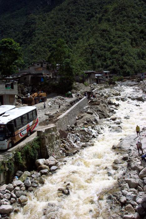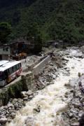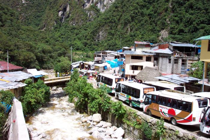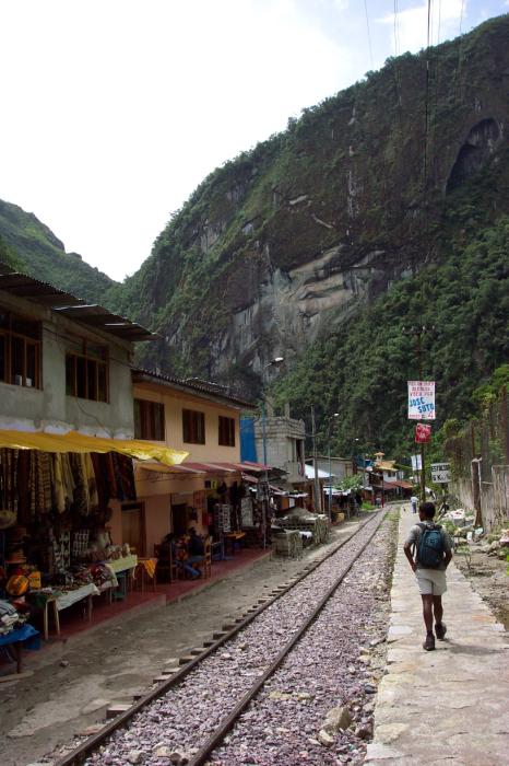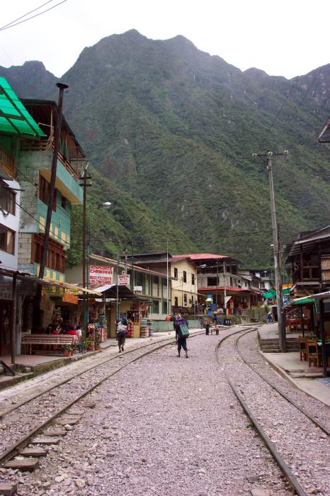 We got to Aguas Calientes around 10:15. Aguas Calientes is a small village whose raison d'etre is to serve tourists travelling to Machu Picchu. It existed before Machu Picchu was discovered, but was not much more than a collection of huts. With the rise of tourism to Machu Picchu, it erupted into a town whose sole purpose is to extract money from tourists. This was not hurt by the fact that it is also home to a set of hot springs. The town is now a solid mass of restaurants, hotels and shops.