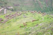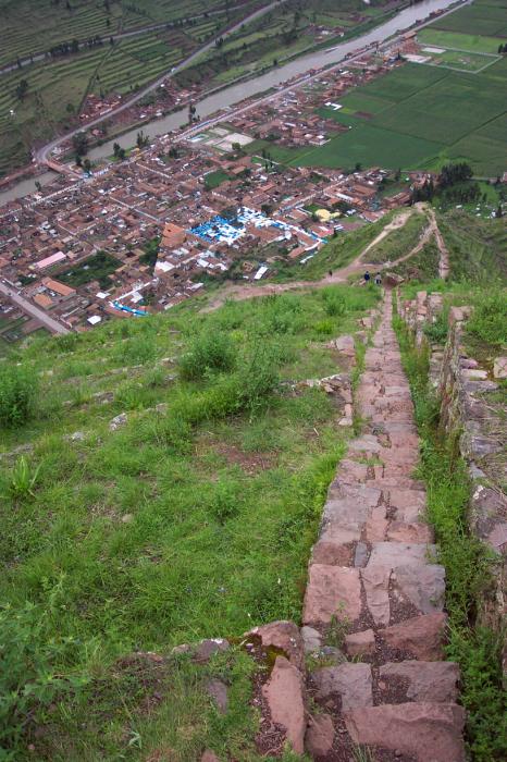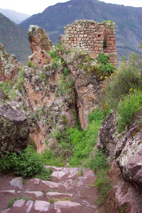 After lunch, we got a taxi to the top of the ruins. Similar to our plan at Saqsaywaman, we wanted to get a ride to the top of the ruins, and walk down, back to Pisac itself. When we saw the condition of people reaching the top, we decided that this was a good idea. The only catch was there were two landings at the top, and we got let off at the lower one. The upper one, which has another set of ruins, was about 100 meters up. We ended up hoofing it.