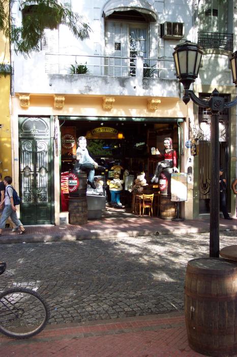 After we got the bus times, we decided to check out the San Telmo and La Boca barrios (neighborhoods.) Both were working class neighborhoods populated by immigrants around the turn of the century and are still working class. San Telmo was a pretty interesting neighborhood and had flea markets, antique shops and bars. At one flea market, Hyun bought some old Iraqi currency with Saddam on it. I considered getting some but I figured that I could get the same stuff off of eBay. La Boca, however, was largely a dump reminding me of lower Washington street back in Boston. Eventually we made it down to where all of the artists are and it was a bit more brighter (literally.)