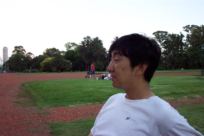 We made our way back to the hotel and coming into the room, noticed that Hyun was there before. Actually on sighting his backpack, I exclaimed "Someone else's stuff is here!" We went next door to check our email and got a message from him, saying just to go on and we would meet at night. So we identified a place to eat that night and we set off. It would turn out that the place closed and the front of the restaurant was sealed off with bricks with a "For Sale" sign on it. So, we ended up going just down the street to a quasi-buffet place called "Gran Victoria." It was weird because it was an all you can eat Chinese style buffet, but you could also order barbecue and pasta. I ended up ordering chorizo and asado. Asado is strips of beef grilled without any sauce or marinade, which made me skeptical because I like strong sauces. However it was actually quite good; I ate quite a bit of it. After dinner, we took a taxi back to the hotel and met up with Hyun. We hung out and then crashed.