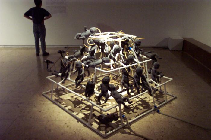 We decided that we wanted to be quick, so we rushed through. The exhibits that we saw was the typical mix of nice paintings, so-so paintings, and pretentious modern art exhibits. For the most part I find modern art to be very pretentious and vapid; while it often has pretensions of deep and meaningful insights, these insights are often are just not useful and meaningless outside the context of the work. However, one piece did catch my eye, but more in a "WTF?" kind of way. It was a rod pyramid with black and white rubber babies being inflated and deflated by blow dryers and tubes. According to the caption, it was supposed to be a commentary on overpopulation in rich and poor countries. I could have very easily made an equally elaborate explanation of it being an anti-abortion message. Nor did it exhibit any form of irony that made me consider the issue in a different way.
